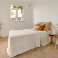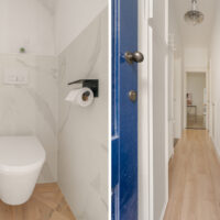 Aan de achterzijde ligt de slaapkamer: rustig gelegen, prettig van formaat en met direct contact met de tuin. Aangrenzend bevindt zich de strak en fris uitgevoerde badkamer met een inloopdouche en een wastafelmeubel. Samen geven zij een luxe hotelsuite-gevoel. Het toilet is separaat en bereikbaar vanuit de hal, wat bijdraagt aan het dagelijkse wooncomfort.