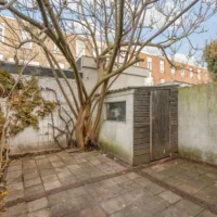 De beschutte tuin op het noordoosten is een heerlijke aanvulling op de woning. Een fijne plek om rustig buiten te zitten, een boek te lezen of de dag ontspannen af te sluiten. Achter in de tuin bevindt zich een externe berging van circa 3,7 m², ideaal voor fietsen en extra opslag.