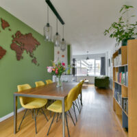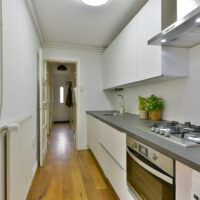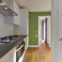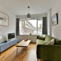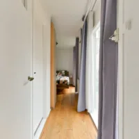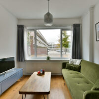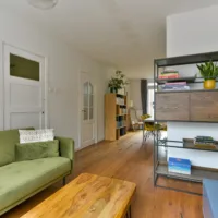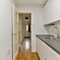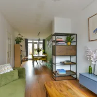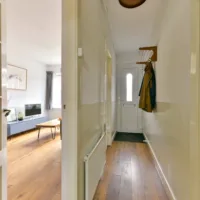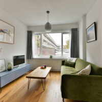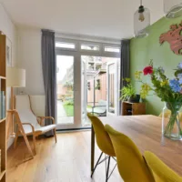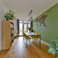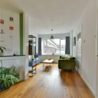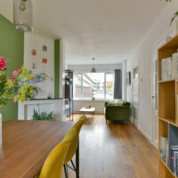 Je komt binnen via je eigen voordeur. De hal verbindt alle ruimtes met elkaar en geeft direct dat warme, verzorgde gevoel dat deze woning kenmerkt. De woonkamer is een heerlijke plek: licht, open en verrassend ruim. De houten vloer en hoge plafonds zorgen samen voor een moderne, gezellige sfeer. Door de woning heen kom je karakteristieke details uit de jaren ’30 tegen. Er is volop ruimte voor een grote eettafel, ideaal voor etentjes met vrienden of kerst met de hele familie. Via de openslaande deuren in de woonkamer stap je zo de tuin in.