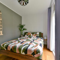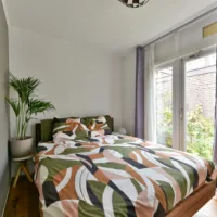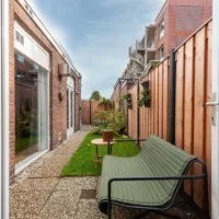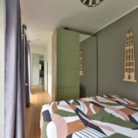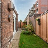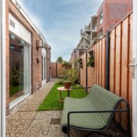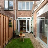 Aan de achterkant ligt de slaapkamer, een rustige plek waar het natuurlijke licht mooi binnenvalt. De kozijnen zijn recent vervangen, met een groot vast raam en een ruim draaikiepraam waardoor binnen en buiten toch in elkaar lijken over te lopen.