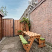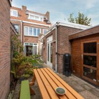 De tuin is voor veel een luxe zo dicht bij de stad: beschut, groen en met plek voor zowel een moestuintje als een eettafel. Dankzij de hoekligging op het zuidoosten geniet je hier van veel privacy en zon. Achterin staat een handige houten berging voor fietsen of tuingereedschap, en er is een achterom.