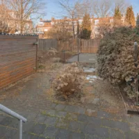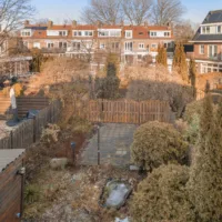 De tuin is uitzonderlijk breed en diep voor deze locatie en biedt volop privacy en mogelijkheden voor meerdere terrassen, groen en eventueel een uitbouw aan de achterzijde.