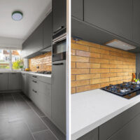 Aan de achterzijde vind je de moderne keuken, uitgevoerd in een strakke en tijdloze stijl. De keuken uit 2024 is praktisch ingericht en biedt direct toegang tot de tuin, waardoor binnen en buiten mooi in elkaar overlopen.