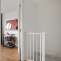 Op de verdiepingen bevinden zich in totaal vier kamers, waardoor de woning verrassend veel ruimte biedt. Of je nu meerdere slaapkamers nodig hebt, een thuiswerkplek wilt creëren of een hobbyruimte zoekt, hier past het allemaal.
