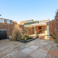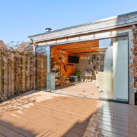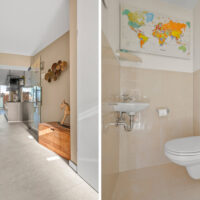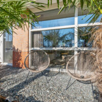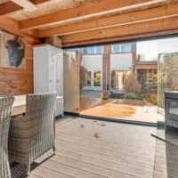 De strakke wanden en de keramische tegelvloer met vloerverwarming lopen door over de gehele begane grond. Via dubbele openslaande deuren stap je de zonnige achtertuin in, die zowel aan de voor- als achterzijde volop zon biedt. Onder de overkapping met afsluitbare glazen schuifwand geniet je het hele jaar door van het buitenleven. Daarnaast staat naast de woning een vrijstaande, volledig geïsoleerde salon met airconditioning, ideaal als werkruimte, hobbyruimte of gastenverblijf. Automatische tuinverlichting rondom de woning zorgt voor extra comfort en sfeer.