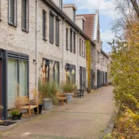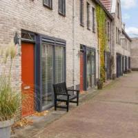 Aan de voorzijde van de woning bevindt zich het autovrije hofje, waardoor de straat rustig blijft en er geen verkeer langs de woning rijdt – ideaal voor gezinnen en iedereen die waarde hecht aan een veilige en prettige woonomgeving.