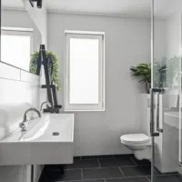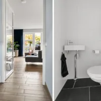 - Badkamer voorzieningen Toilet, douche, dubbele wastafel