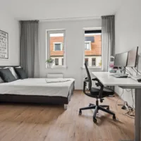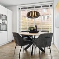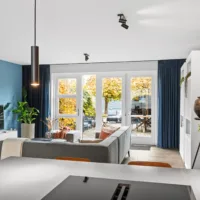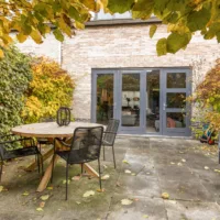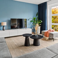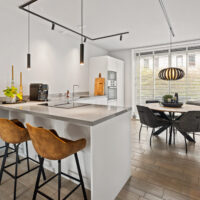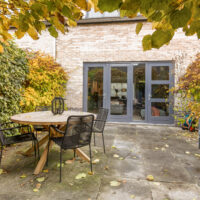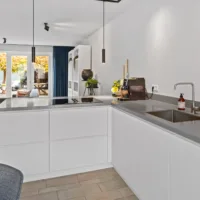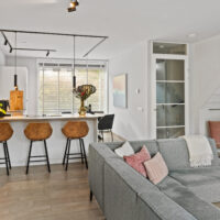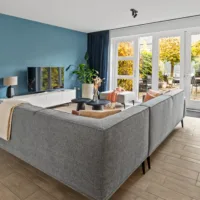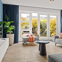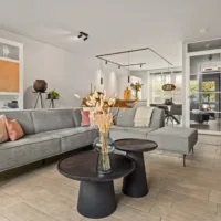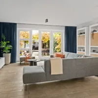 De lichte, brede woonkamer is in 2022 volledig gemoderniseerd: wanden en plafonds zijn strak gestuukt en de vloer is voorzien van vloerverwarming met een stijlvolle keramische tegelvloer – luxe, comfortabel en onderhoudsvriendelijk. Vanuit de woonkamer is er toegang tot de zonnige achtertuin.