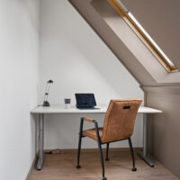 Ruime overloop met aansluitingen voor wasmachine en droger, cv-ketel (Intergas, 2023) en mechanische ventilatie. De zolderkamer is licht en ruim, voorzien van een dakkapel aan de voorzijde en drie dakramen aan de achterzijde. Achter de knieschotten bevindt zich extra bergruimte. Deze verdieping biedt tevens de mogelijkheid om extra slaapkamers te realiseren.