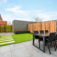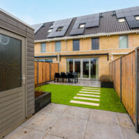 – Achtertuin gelegen op het zuidwesten met zonnescherm en achterom;