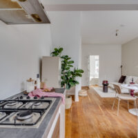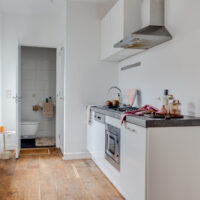 De woonkamer ligt centraal in de woning en heeft een prettige rechthoekige indeling, waardoor je er eenvoudig een gezellige zithoek én eettafel kwijt kunt. Achterin bevinden zich de keuken en de badkamer. De keuken is praktisch opgezet en grenst aan de badkamer, die is voorzien van een douche, toilet en wastafel. Extra pluspunt: een aparte ruimte voor de CV en bergruimte.