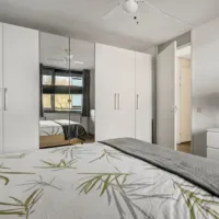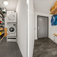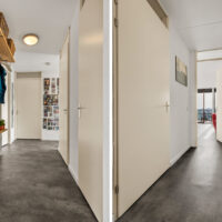 Je betreedt het appartement via een ruime entreehal. Alle vertrekken zijn logisch bereikbaar vanuit de hal, zonder onnodige doorgangen of verloren ruimte.