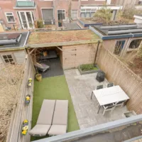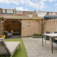 De tuin op het zuiden is een groot pluspunt van deze woning. Dankzij de gunstige ligging geniet je hier vrijwel de hele dag van de zon. Er is voldoende ruimte voor een loungehoek, eettafel en groen. De tuin vormt een mooi verlengstuk van de woning: verzorgd, strak en instapklaar.