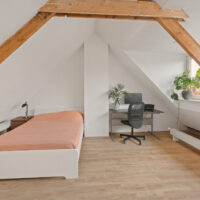 De woning beschikt over drie ruime slaapkamers, die flexibel zijn in te richten als slaap-, werk- of hobbykamer. De badkamer is netjes afgewerkt en voorzien van een los bad en de benodigde sanitaire voorzieningen. Daarnaast is er praktische bergruimte aanwezig.