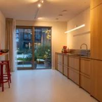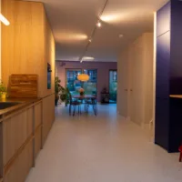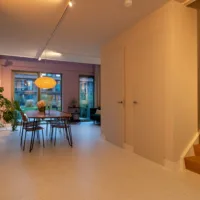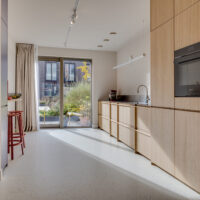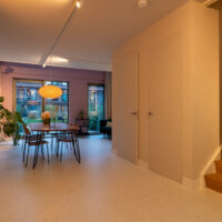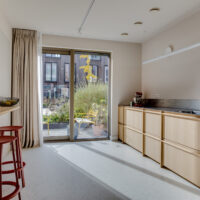 Via de entree aan de hofzijde kom je binnen in een ruime hal met toegang tot de eerste woonkamer en de grote woonkeuken. De keuken is een echte blikvanger: strak, modern en voorzien van hoogwaardige inbouwapparatuur. De grote raampartijen brengen het licht diep de ruimte in en zorgen voor een prettige verbinding met buiten.