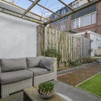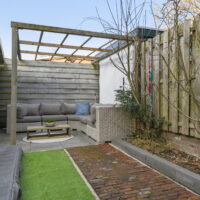 Buiten genieten: Vanuit de keuken stap je direct de diepe op het westen georiënteerde achtertuin in, een groene plek om tot rust te komen. De separate schuur achter in de tuin biedt praktische bergruimte. De moderne achtergevel met grote raampartijen, gerealiseerd in 2010, verbindt binnen en buiten op een mooie manier.