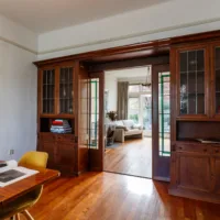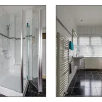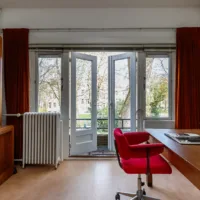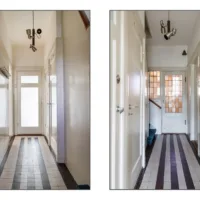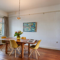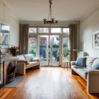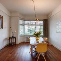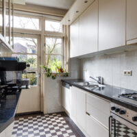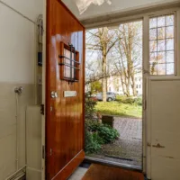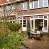 De woning ademt de sfeer van de periode waarin ze gebouwd is. Originele glas-in-lood schuifdeuren tussen eetkamer en woonkamer, ingebouwde betimmerde kasten, hoge plafonds met lijsten, een eikenhouten vloer en een authentieke voordeur. Wie oog heeft voor dit soort details, vindt hier een interieur dat jaren van zorg en respect voor het origineel weerspiegelt. Tegelijkertijd is de woning behoorlijk verduurzaamd en heeft ze energielabel C.