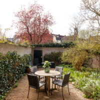 De achtertuin is op het westen gelegen, wat zorgt voor zon in de namiddag en avond. De tuin is groen, besloten en ommuurd en bied voldoende ruimte voor een tuintafel. De tuin is onder architectuur aangelegd. Op het balkon aan de voorzijde geniet je van het uitzicht over het plantsoen en de singel.