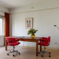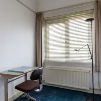 Op de eerste verdieping vind je twee ruime slaapkamers en een goede werkkamer aan de voorzijde, met uitzicht op de singel en het plantsoen. Een fijnere thuiswerkplek is moeilijk voor te stellen. De badkamer, het separate toilet en de overloop completeren deze verdieping.