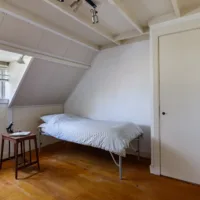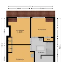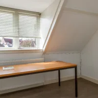 De tweede verdieping telt drie slaapkamers met meerdere inbouwkasten. De indeling biedt volop ruimte om hier een tweede badkamer te realiseren, wat de woning nog gezinsvriendelijker maakt dan ze al is. Helemaal bovenin, bereikbaar via een vlizotrap, bevindt zich een ruime vliering met een vrije hoogte van 2,30 m en opvallend veel bergruimte.