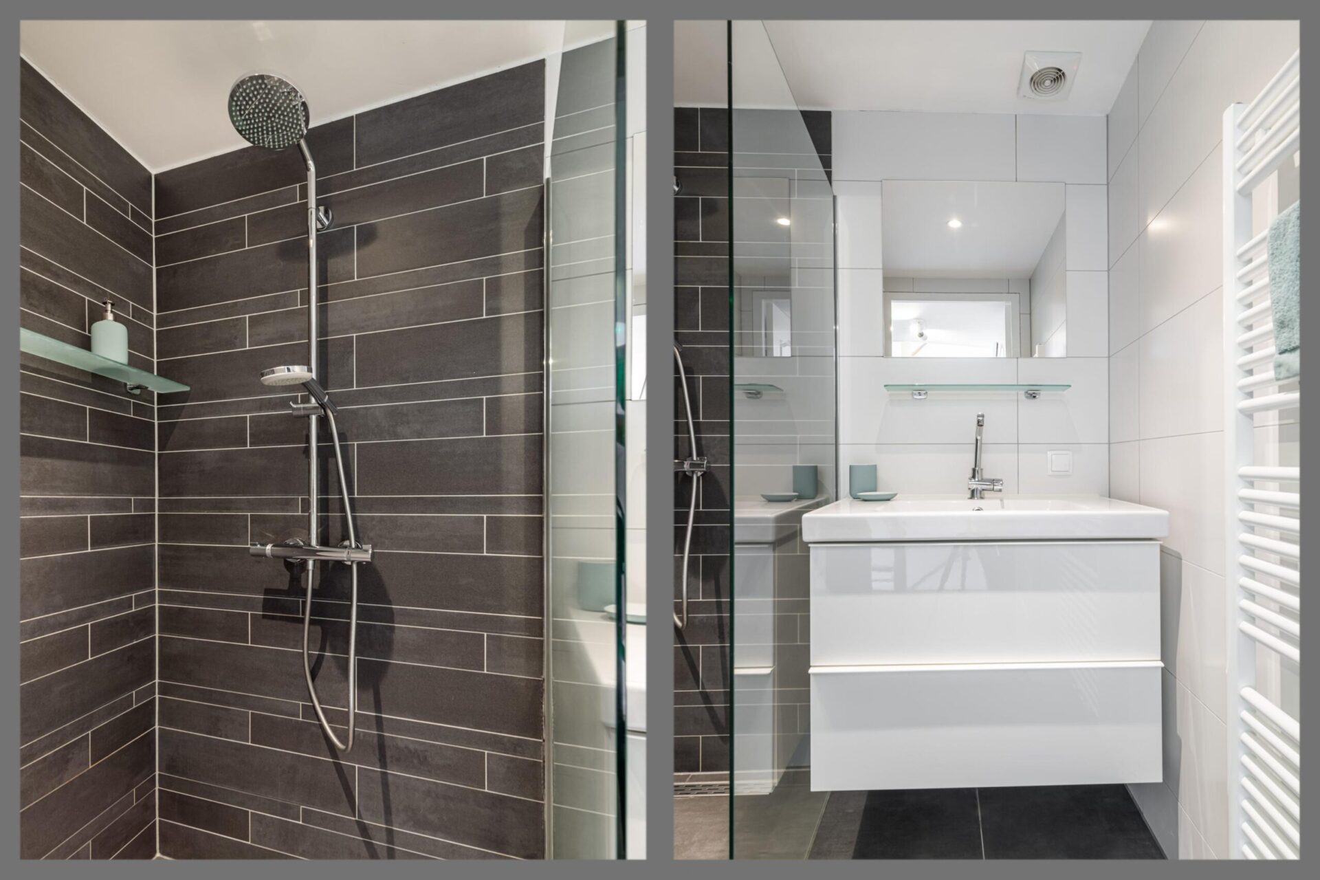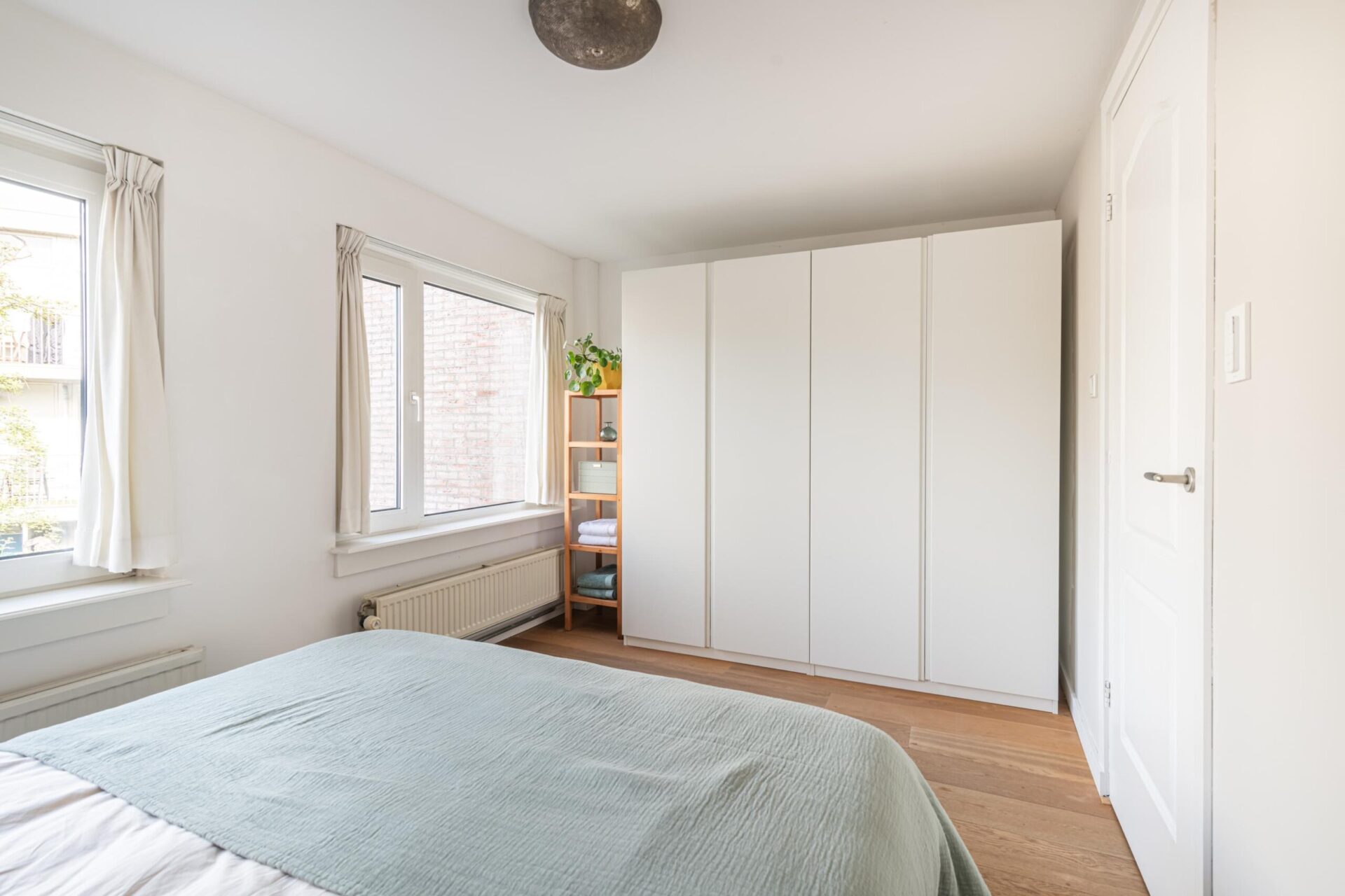 Vanaf de overloop zijn twee slaapkamers bereikbaar, waarvan de grootste aan de achterzijde. Vanuit deze kamer kijk je uit op de tuin en het groene dak. De slaapkamer aan de voorkant heeft een vaste bergkast. De badkamer is modern uitgevoerd met een inloopdouche, wastafelmeubel en designradiator.