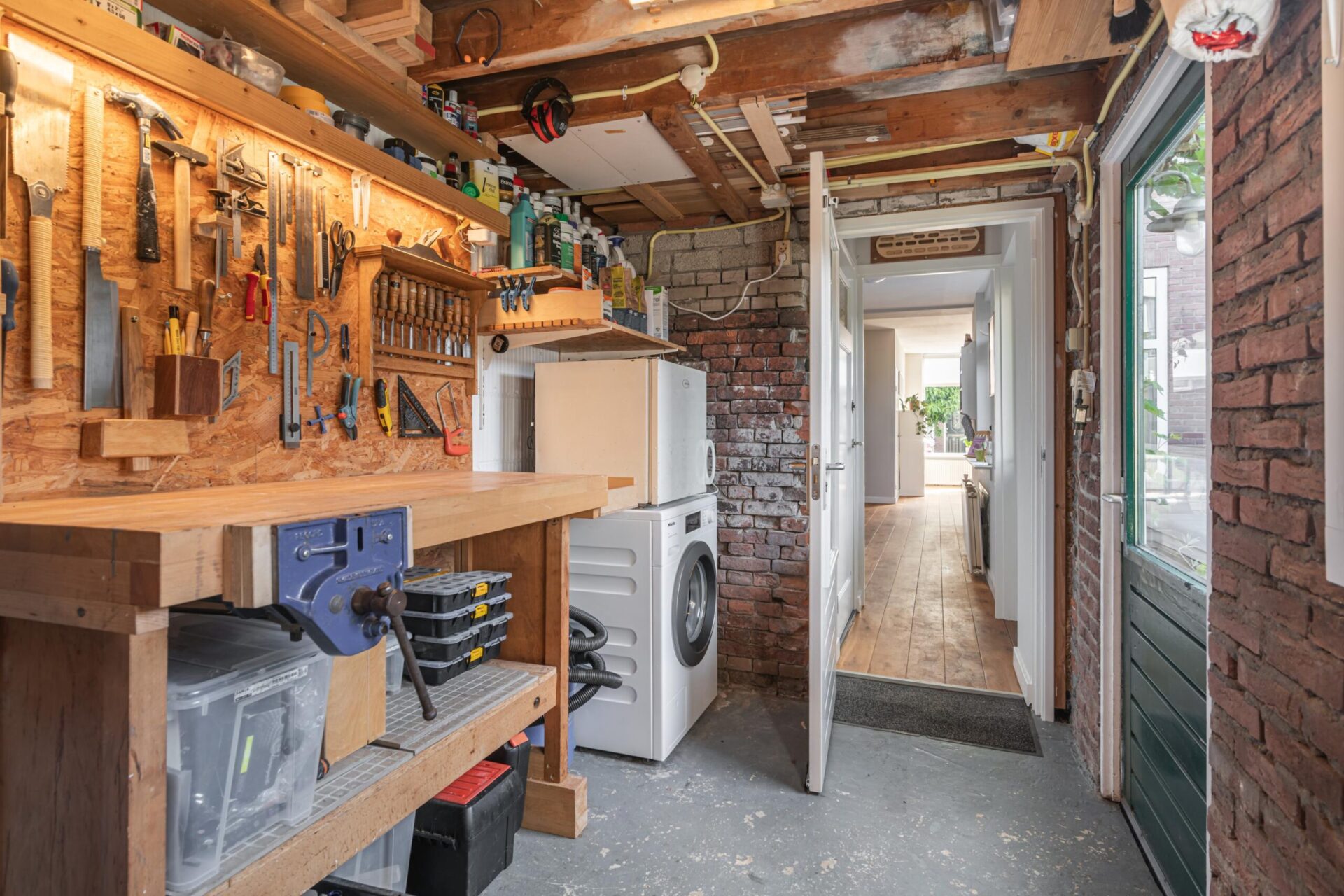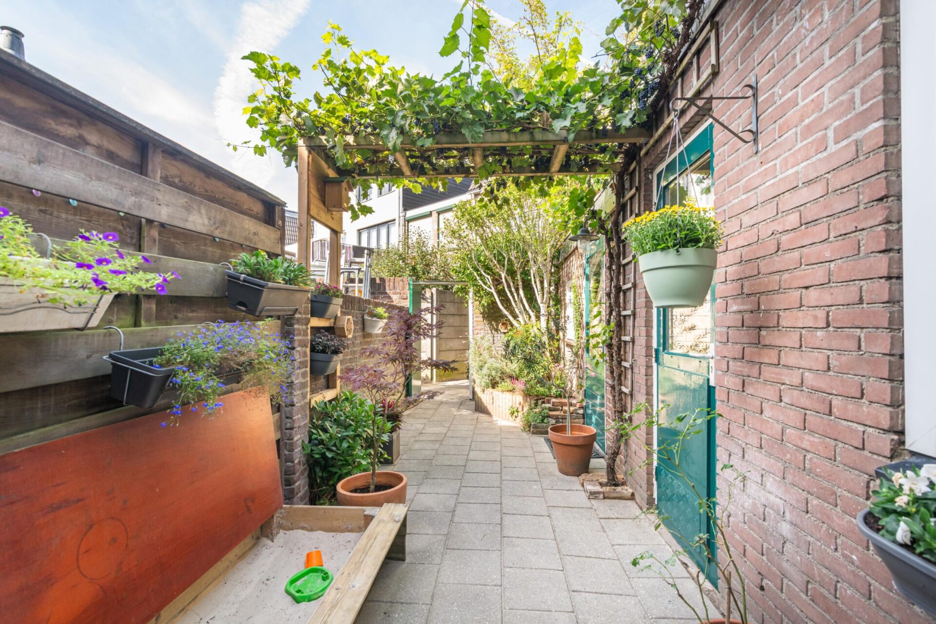 Via de entree kom je in de hal met trapopgang. De doorzonwoonkamer biedt ruimte voor zowel een zit- als eethoek. Onder de trap is er een praktisch ingerichte bergkast. De moderne keuken is voorzien van inbouwapparatuur en geeft toegang tot de tuin. De achtertuin is gezellig ingericht met, voor een stadstuin, veel groen. De tuin ligt op het westen en beschikt over een achterom. Achterin de tuin bevindt zich de stenen berging, momenteel in gebruik als wasruimte en werkplaats.