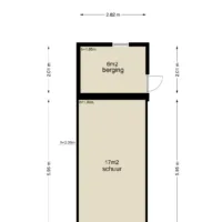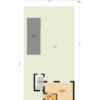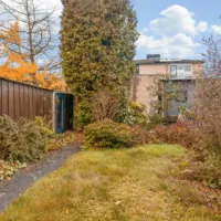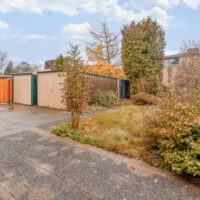 Achtertuin gelegen op het zuidwesten met een garagebox/schuur en berging. De voortuin heeft een parkeermogelijkheid.