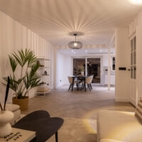 Zodra je binnenstapt valt de rust en het licht op. De woonkamer aan de voorzijde heeft grote ramen waardoor de ruimte baadt in daglicht. Aan de achterzijde ligt de eetkamer, met aansluitend de nieuwe keuken in L-opstelling.