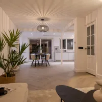 Inside, everything is new, bright and stylish: a living room with a herringbone floor, a modern kitchen, a luxurious bathroom, and four well-proportioned bedrooms. There’s nothing left to do here — just move in and enjoy.
