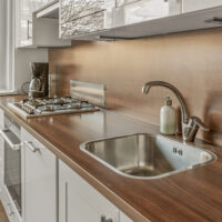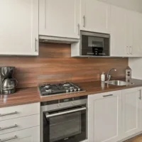 De eigentijdse keuken is voorzien van Siemens-apparatuur: gaskookplaat, oven, magnetron, afzuigkap, koel-/vriescombinatie en vaatwasser. Extra licht en bergruimte zijn aanwezig dankzij een hoek met groot draai-/kiepraam en de netjes weggewerkte cv-installatie (2009).