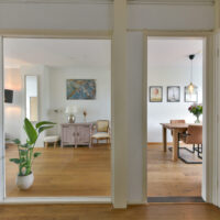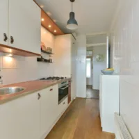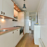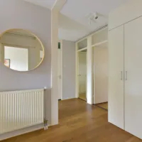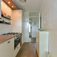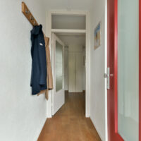 Entree, hal met toegang tot alle vertrekken en een vaste kast voor de CV ketel. De royale woonkamer met eetgedeelte is opvallend licht dankzij de grote ramen aan de voorzijde. Aan de voorzijde heb je direct toegang tot het balkon dat tevens vanuit de keuken toegankelijk is. De ruimte is voorzien van een mooie vloer en biedt voldoende plek voor een ruime zithoek en eettafel.
