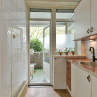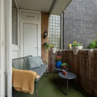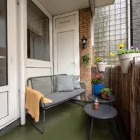 Het ruime balkon ligt op het zuidwesten en biedt uitzicht op het groen rondom het complex. Een fijne plek om rustig te genieten van de zon of een drankje in de avond. De grote vaste kast voorziet ook nog in opbergruimte.