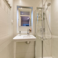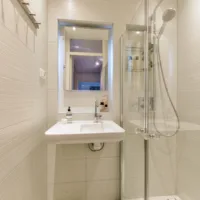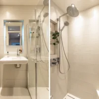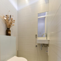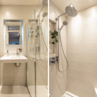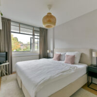 Het appartement beschikt over twee goed bemeten slaapkamers waarvan er een is gelegen aan de voorzijde en een aan de achterzijde. De licht uitgevoerde badkamer is voorzien van een regendouche en wastafel. Daarnaast is er een separaat toilet uitgevoerd in dezelfde stijl als de badkamer.