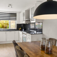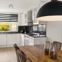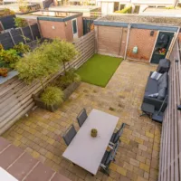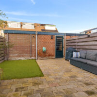 Entree/hal met meterkast, modern hangend toilet met fonteintje. Gezellige woonkamer met veel lichtinval en toegang tot de tuin. De open keuken is aan de voorzijde en voorzien van een 5-pits gasfornuis, oven, magnetron, afzuigkap, vaatwasser en koel-vriescombinatie. Vanuit de woonkamer stap je zo de verzorgde en onderhoudsarme achtertuin op het noordwesten in, hier geniet je volop van de middag- en avondzon. De achtertuin is via een achterom te bereiken.