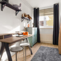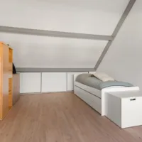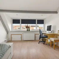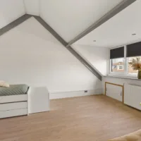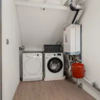 Overloop/voorzolder met cv-installatie en aansluitingen voor wasmachine en droger. De vierde slaapkamer is voorzien van een dakkapel aan de achterzijde.