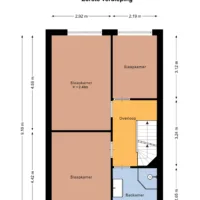 Overloop, drie ruime slaapkamers, waarvan één met dakkapel aan de voorzijde en twee aan de achterzijde. Badkamer met douche, wastafelmeubel en toilet.