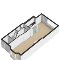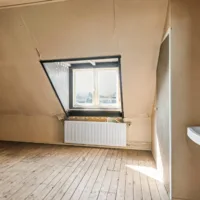 Tweede verdieping: overloop/bergruimte en een kamer met dakkapel aan de achterzijde.