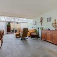 Deze verzorgde en royale eengezinswoning biedt alles wat u kunt wensen. Dankzij de serre-aanbouw met grote raampartijen geniet u hier van veel licht en een ruimtelijk gevoel. De woonkamer is voorzien van een natuurstenen vloer met vloerverwarming. De woning beschikt over een moderne keuken (verbouwd in 2020) met hoogwaardige inbouwapparatuur, waaronder twee multifunctionele ovens van Neff waarvan één met magnetron functie, een inductieplaat van Bauknecht en een Quooker. Aansluitend ligt er een onderhoudsarme achtertuin op het westen, waar u heerlijk van de middag- en avondzon kunt genieten.