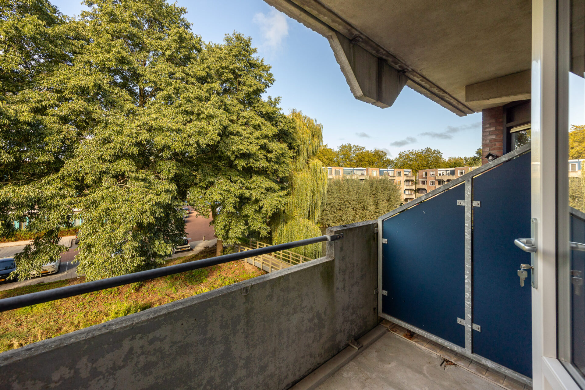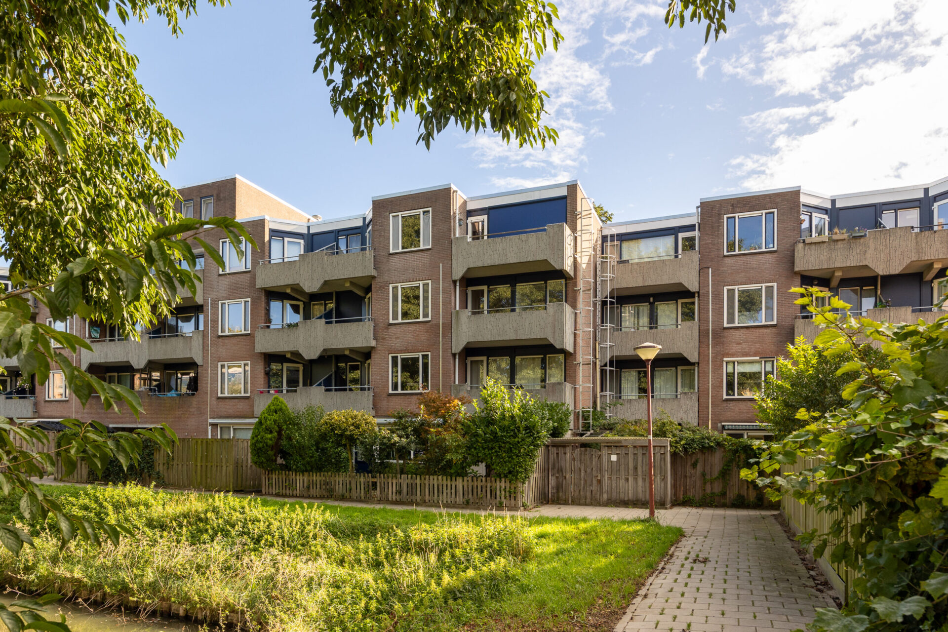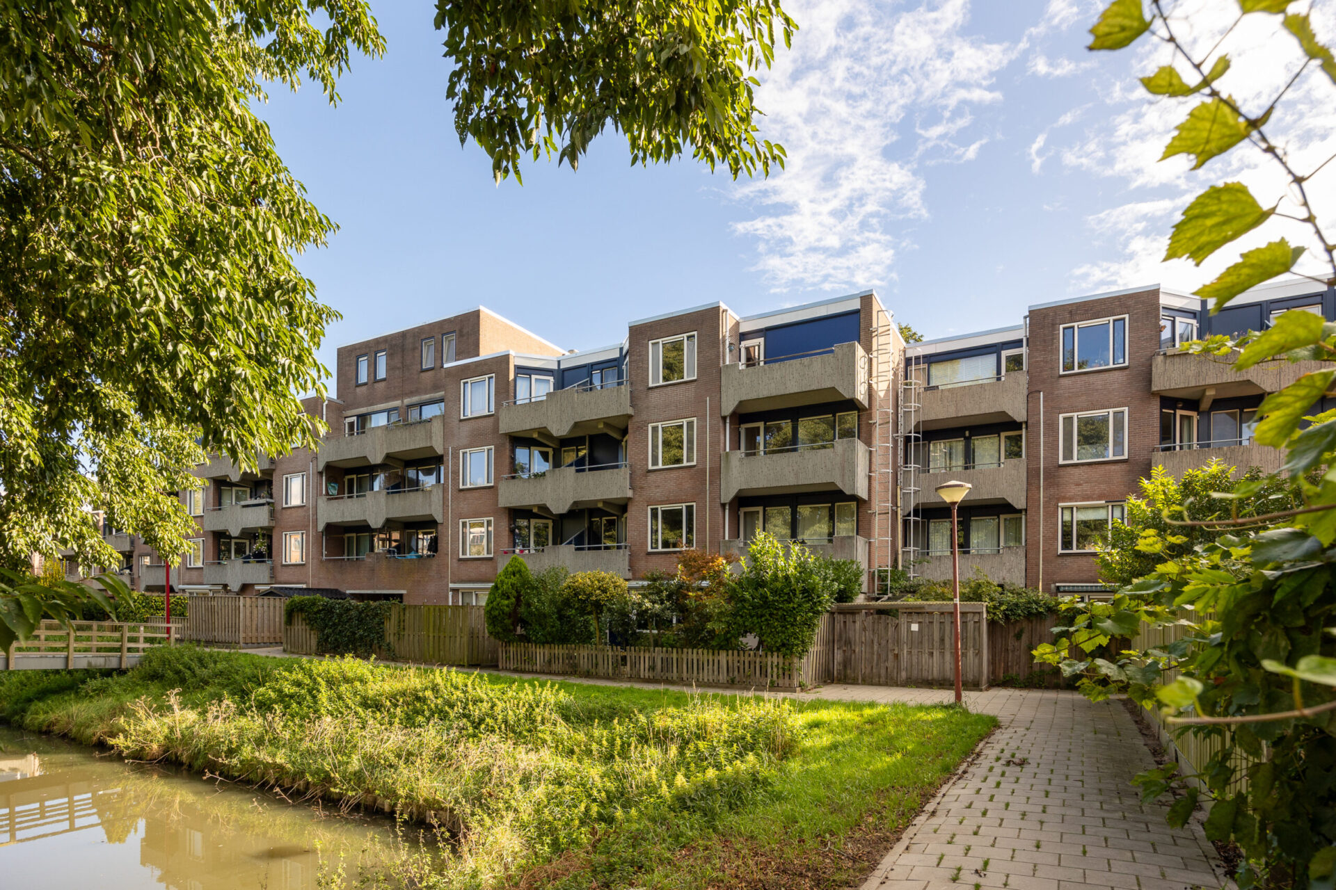 Uniek aan dit appartement zijn de drie balkons, gelegen op verschillende hoeken van de woning. Hierdoor kunt u de hele dag door van de zon of juist de schaduw genieten. Het uitzicht over het groen en het water met het bruggetje maakt het uitzicht compleet.