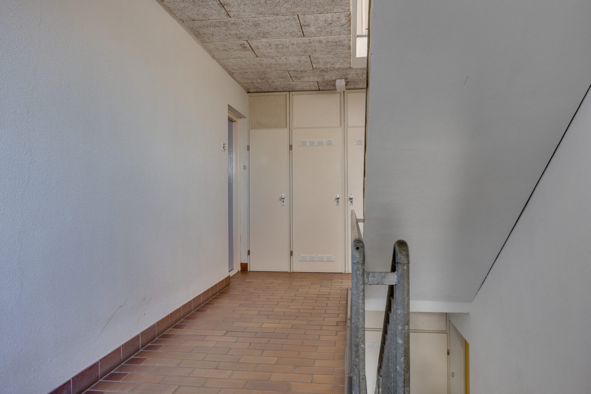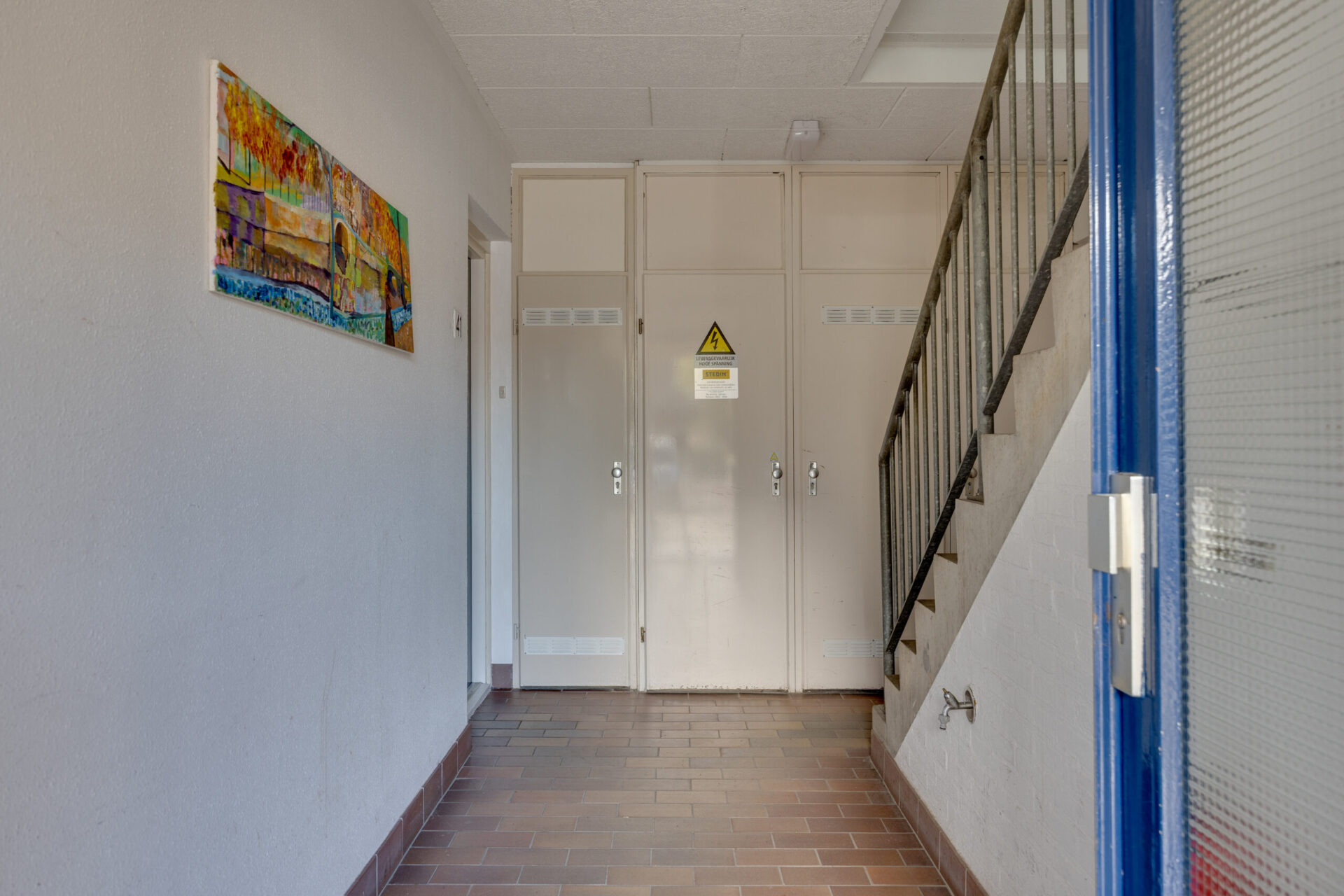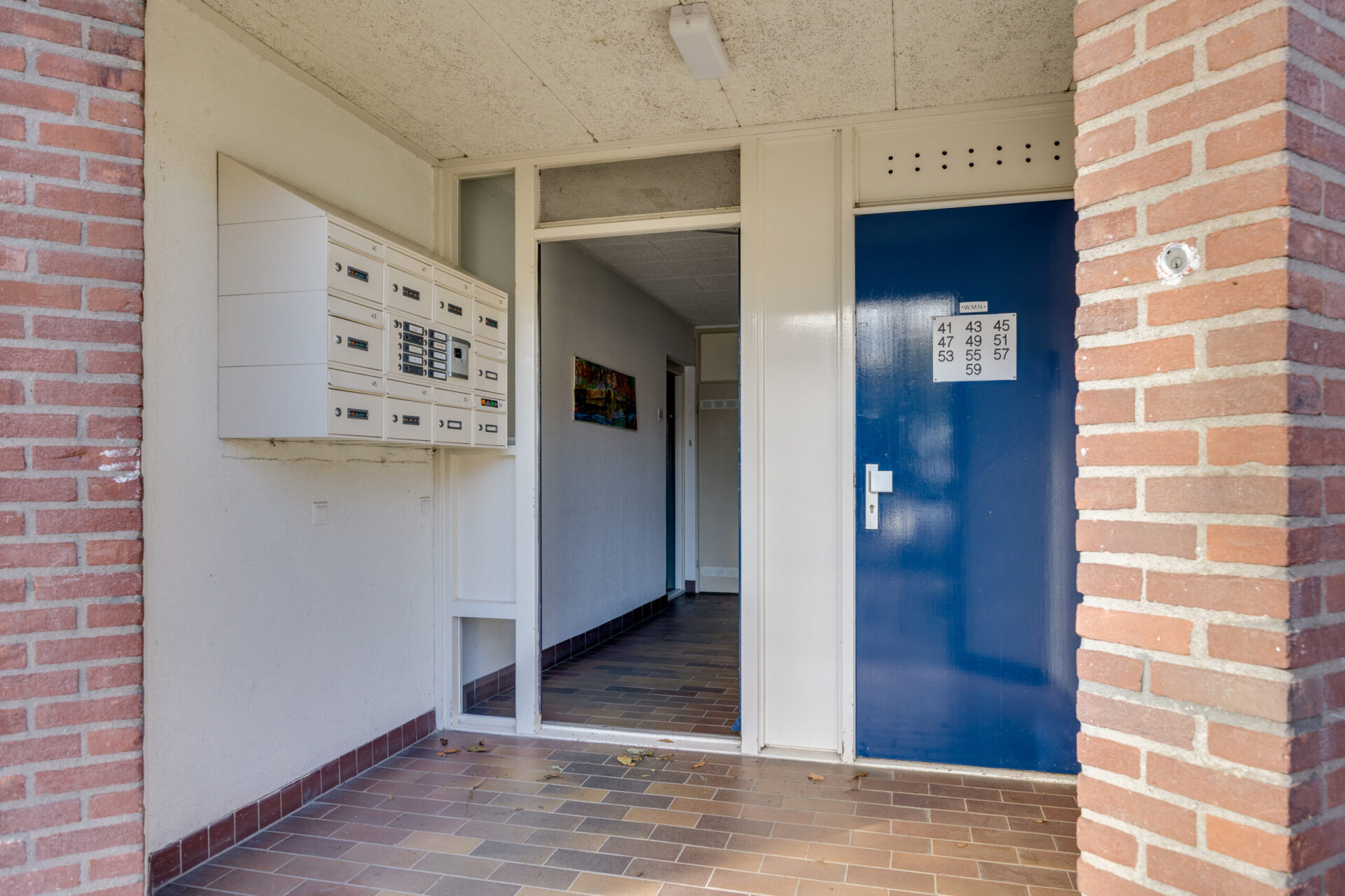 Via de centrale entree met brievenbussen en trapopgang bereikt u het appartement op de tweede verdieping.