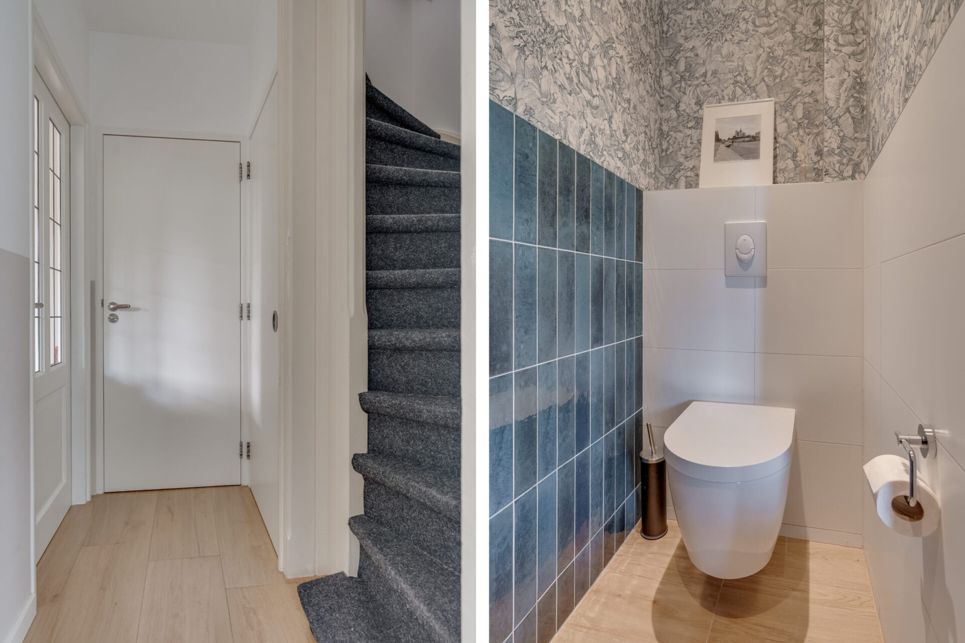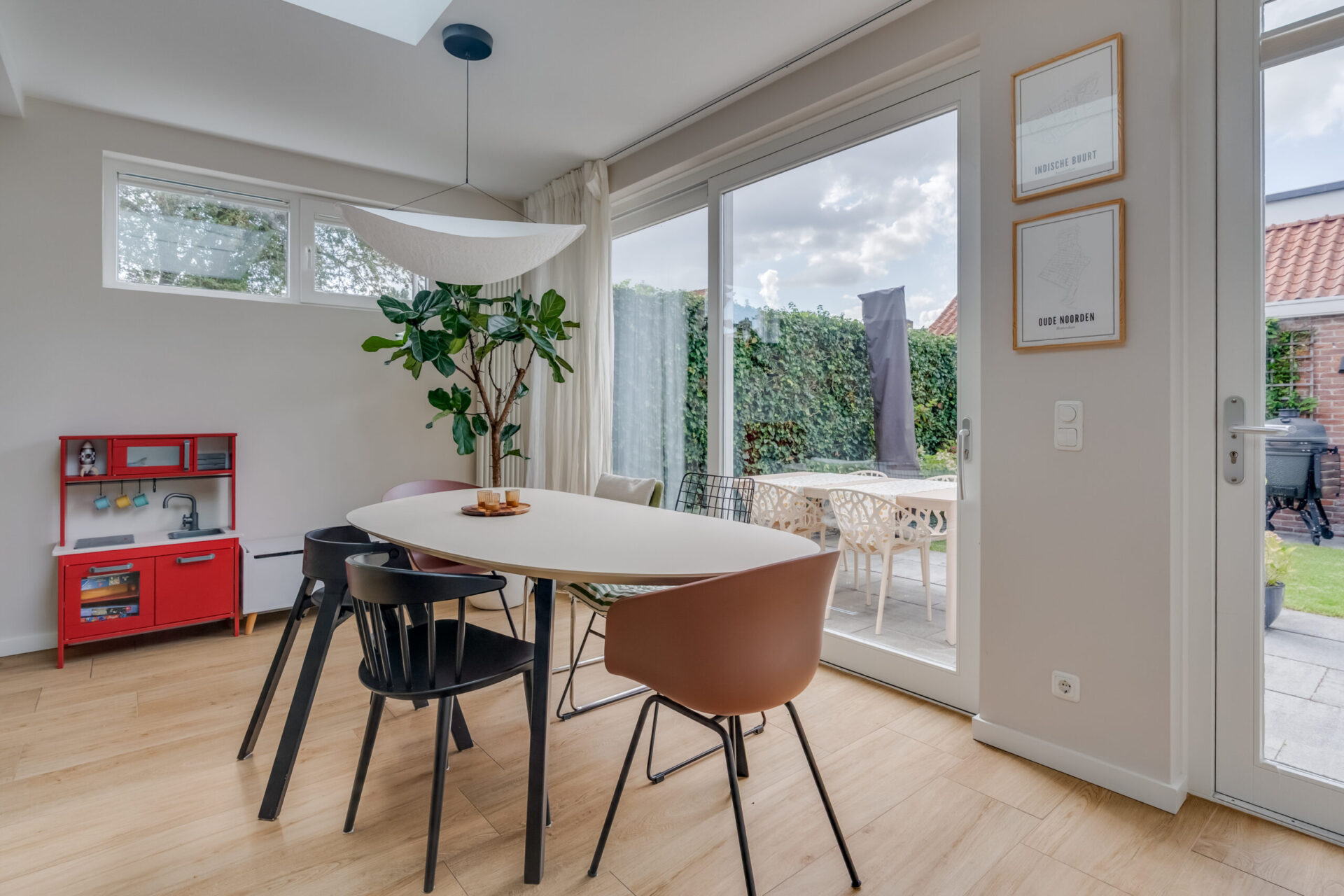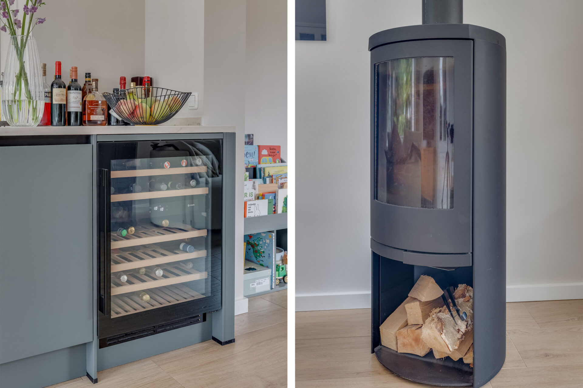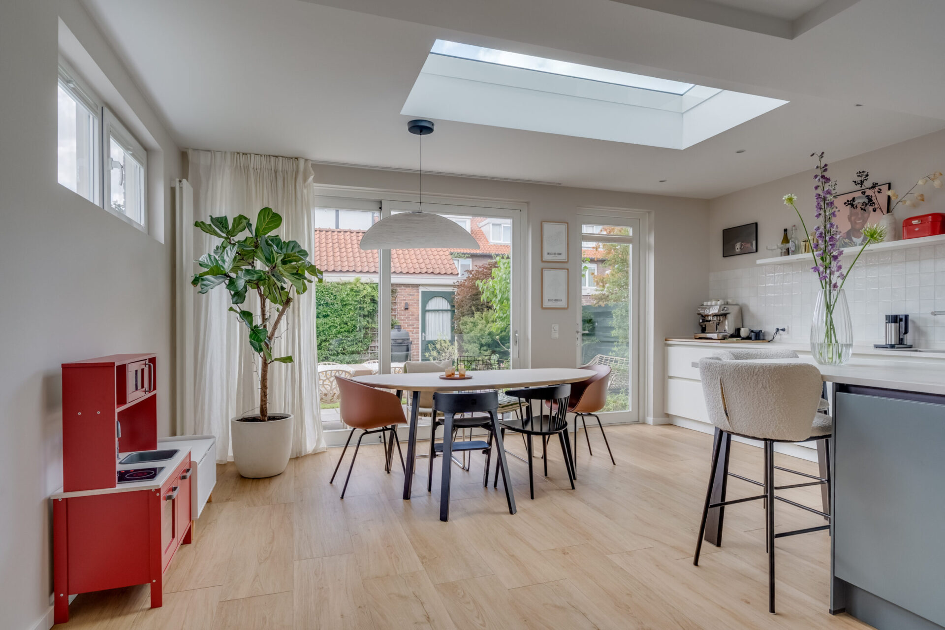 De royale voortuin leidt naar de entree met vernieuwd toilet, meterkast, trapkast en trapopgang. De uitgebouwde woonkamer (maar liefst 3 meter extra) is heerlijk licht dankzij de grote schuifpui, extra zijramen en een daklicht. Een sfeervolle houtkachel en vloerverwarming zorgen voor extra comfort.
