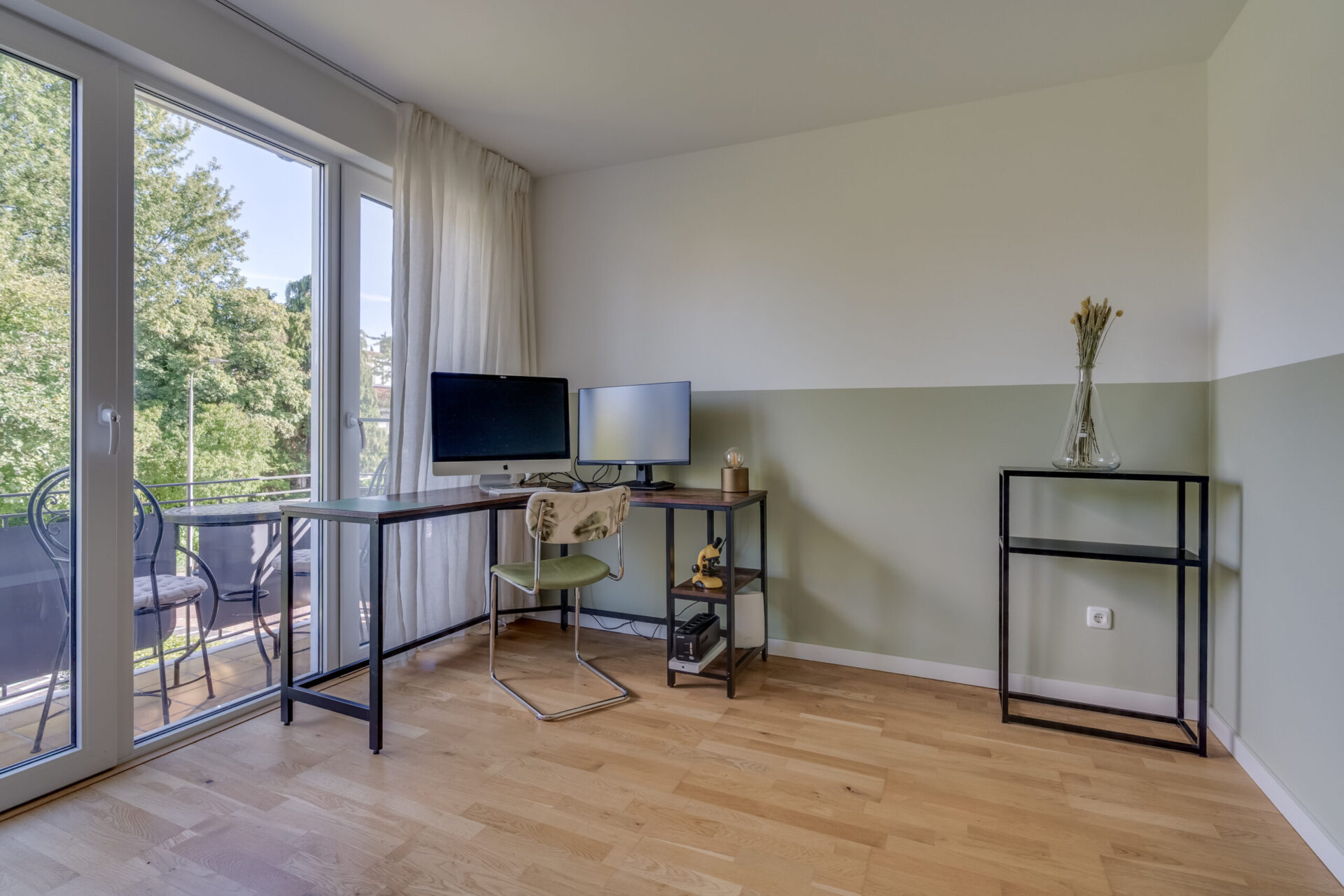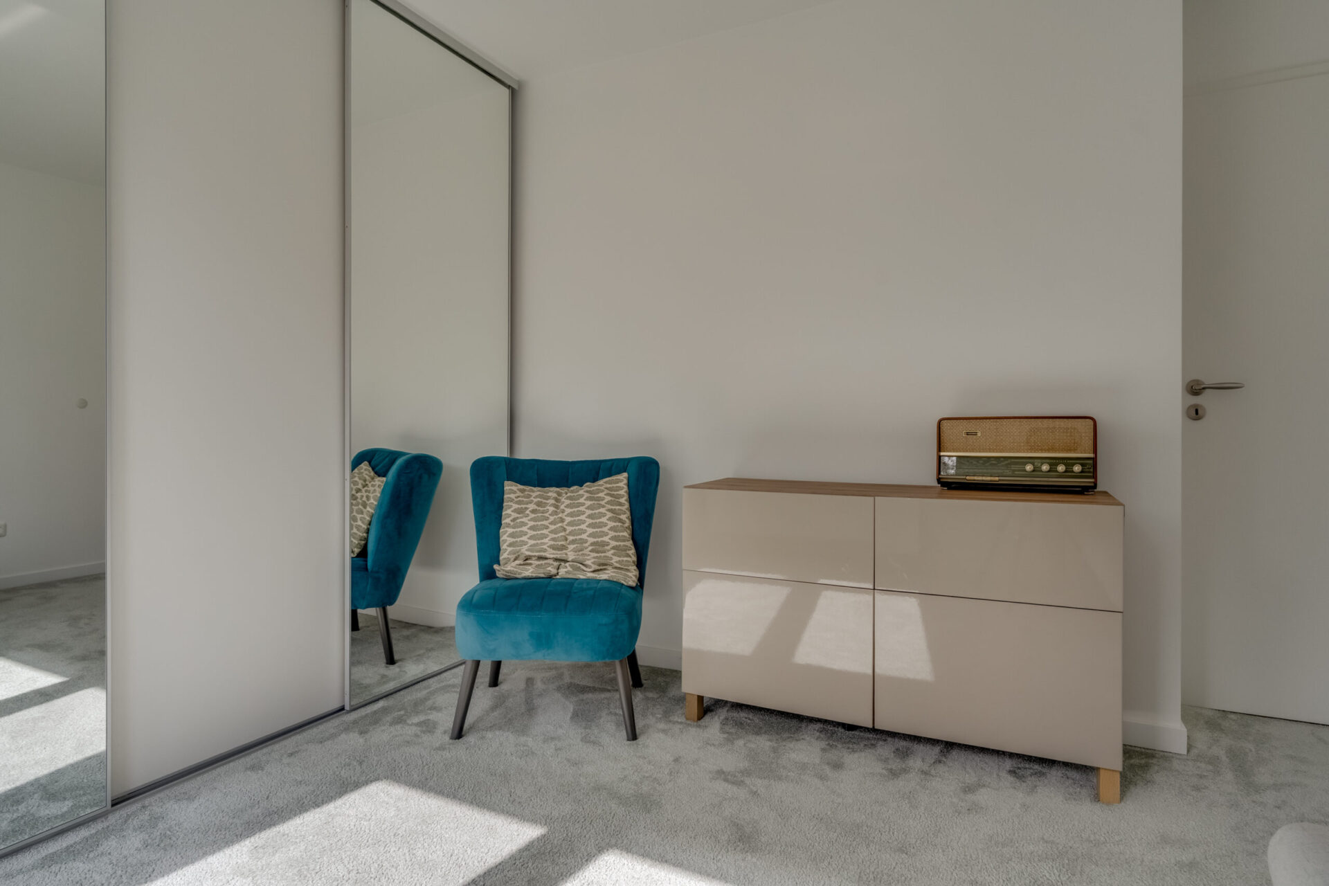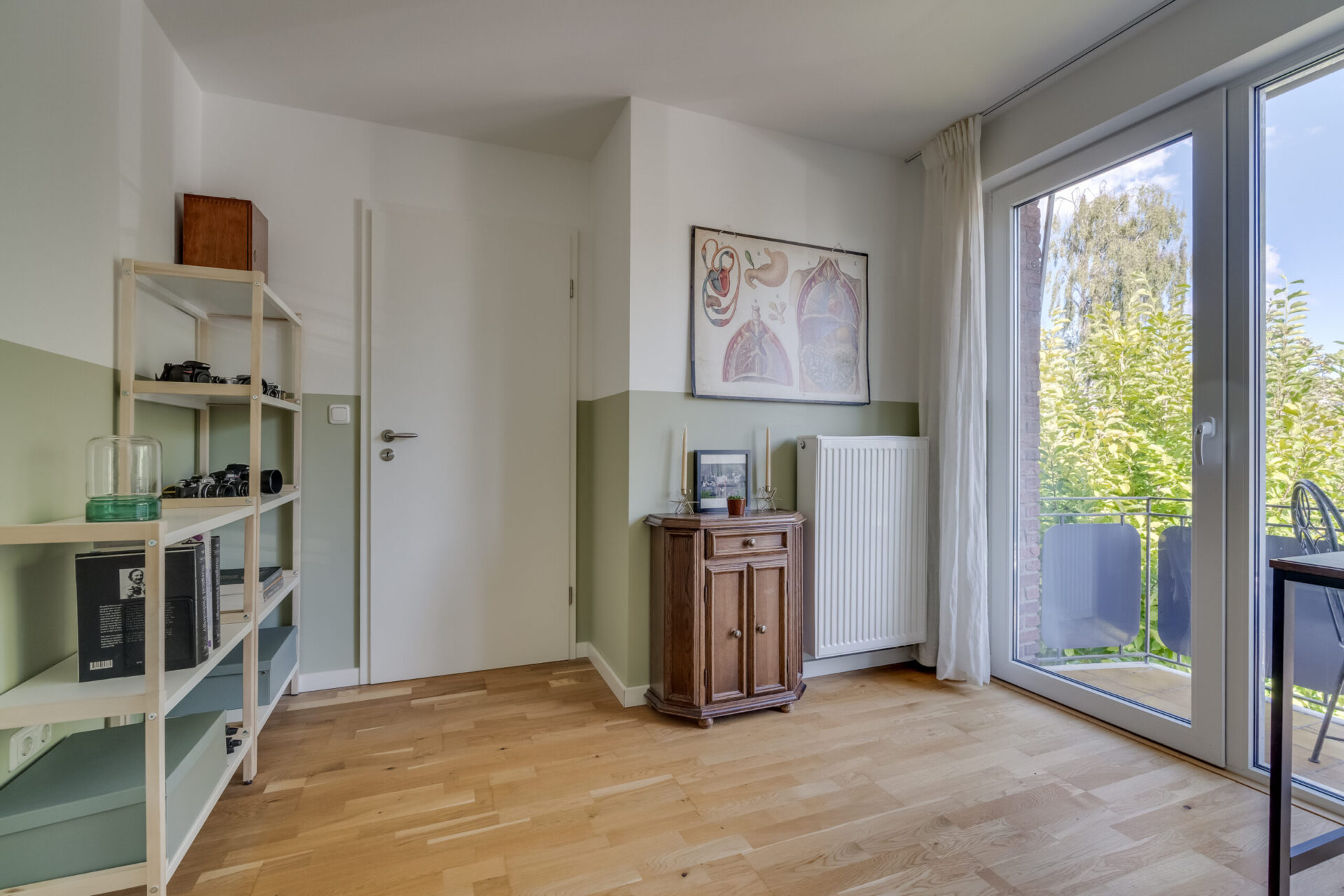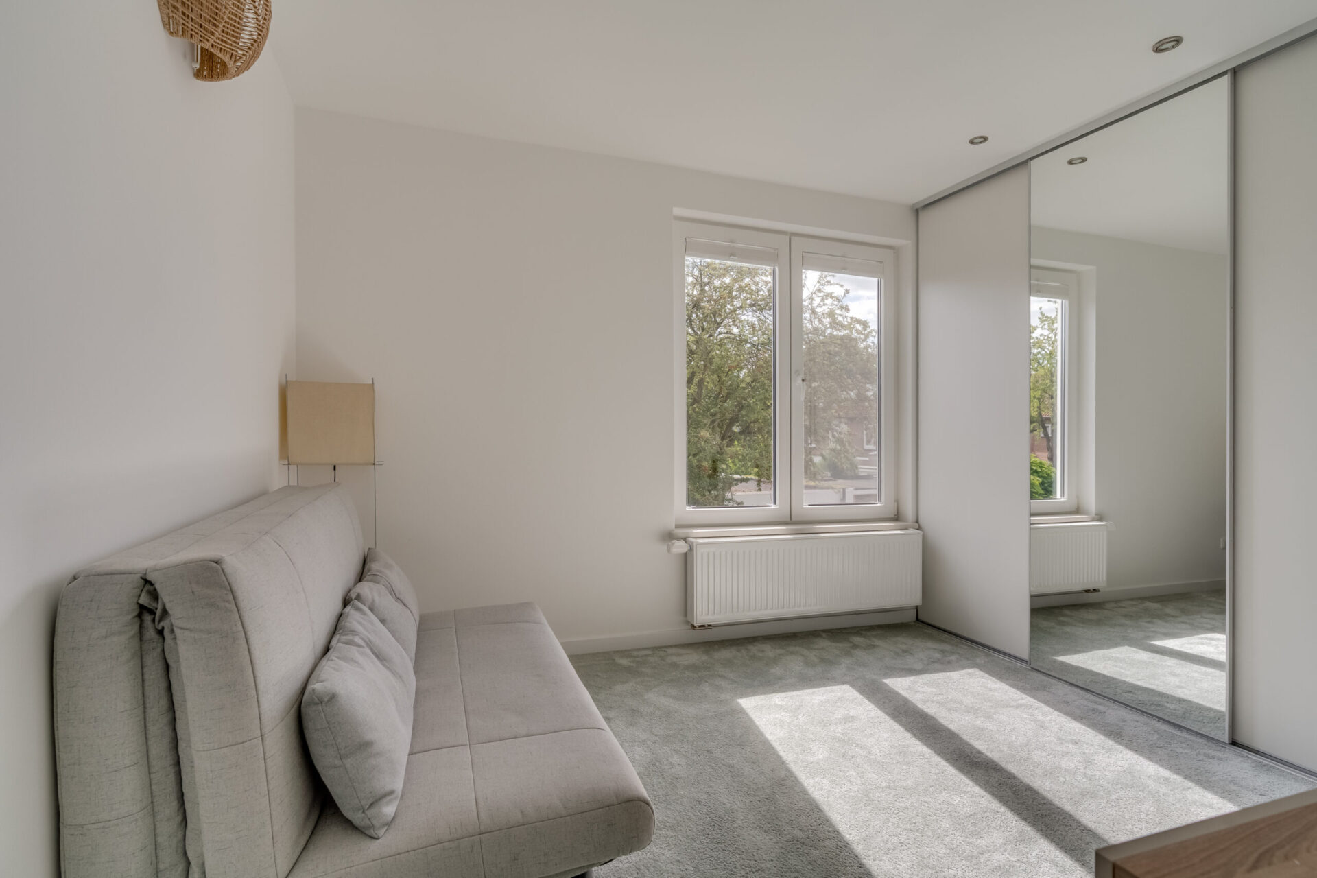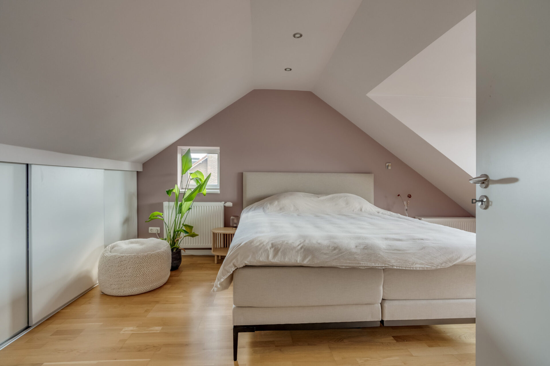 Drie keurig afgewerkte slaapkamers, waaronder een ruime master met grote kastenwand en extra zijraam. De slaapkamer aan de voorzijde heeft toegang tot een balkon. De moderne badkamer is voorzien van douche, toilet en wastafelmeubel.
