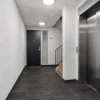Via de centrale hal kom je het gebouw binnen. Hier vind je ook de toegangsdeur naar de bergingen. De berging die bij het appartement hoort, is voorzien van elektra en biedt genoeg ruimte om één of meerdere fietsen te stallen. Met de trap of de lift kun je de derde verdieping bereiken.