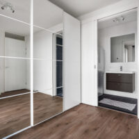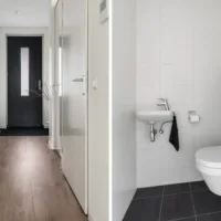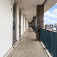 Via de galerij bereik je de entree van het appartement. Bij binnenkomst kom je in de hal, waar plaats is voor een garderobe, de meterkast en het toilet. Vanuit de hal heb je toegang tot de slaapkamer met aangrenzende badkamer, die zich aan de voorzijde van het appartement bevindt.