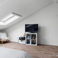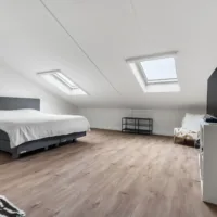 Op deze verdieping bevindt zich een slaapkamer en een extra ruimte die je geheel naar eigen wens kunt inrichten, bijvoorbeeld als werkplek. Vanwege de schuine daken is de ruimte veel groter dan het aangeeft in de gebruiksoppervlakte. Ook de twee grote dakramen zorgen voor volop daglicht en ventilatie.