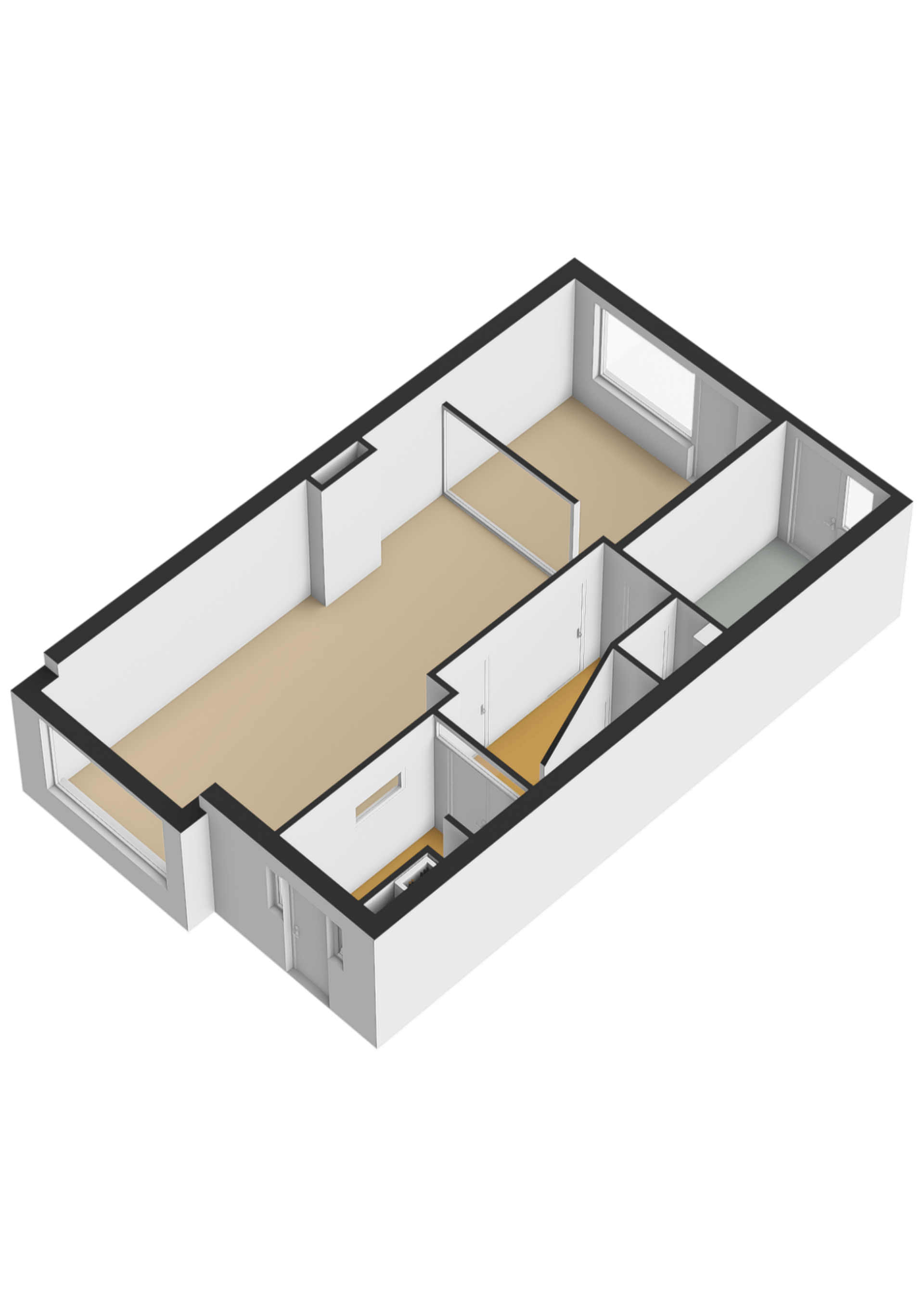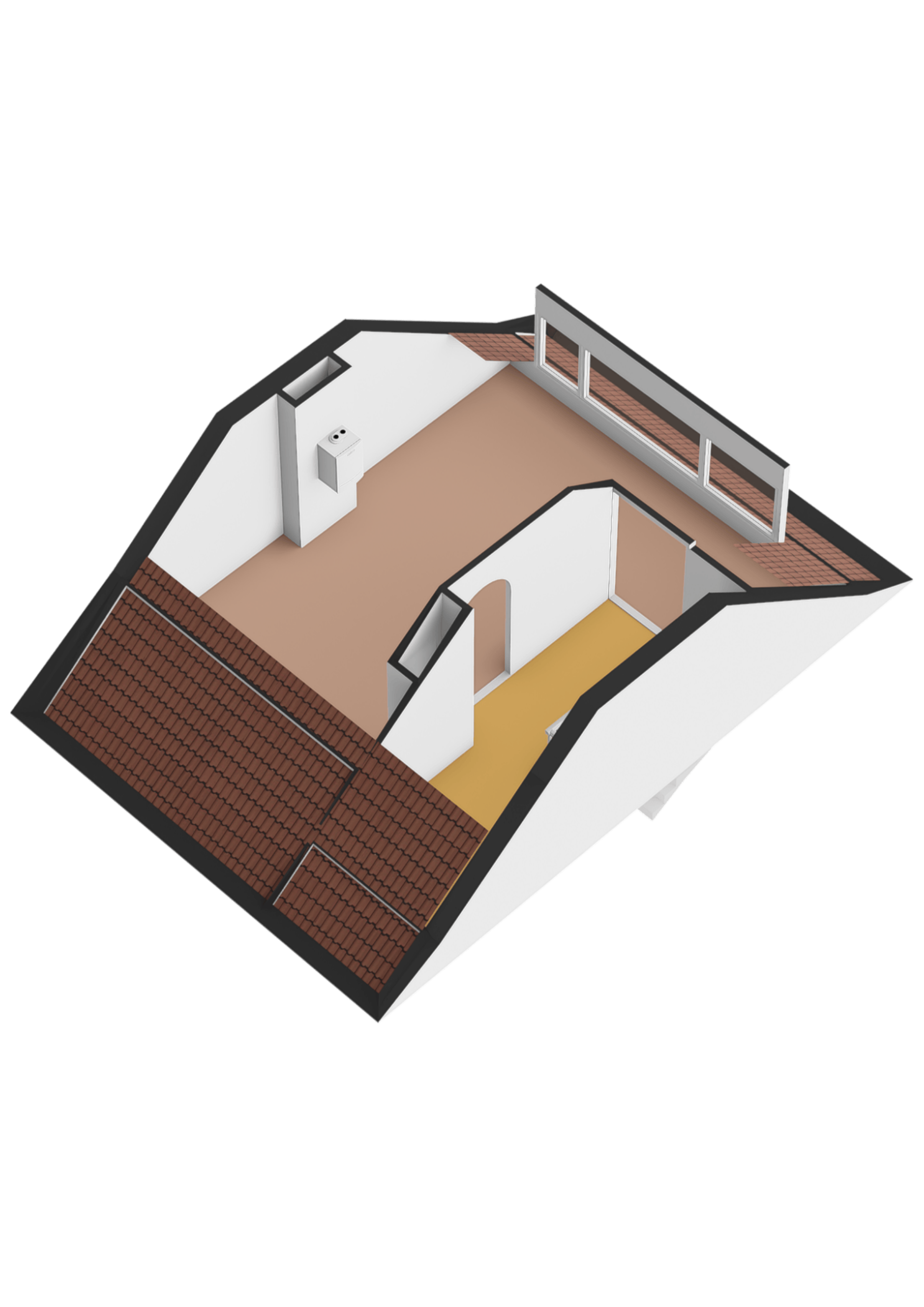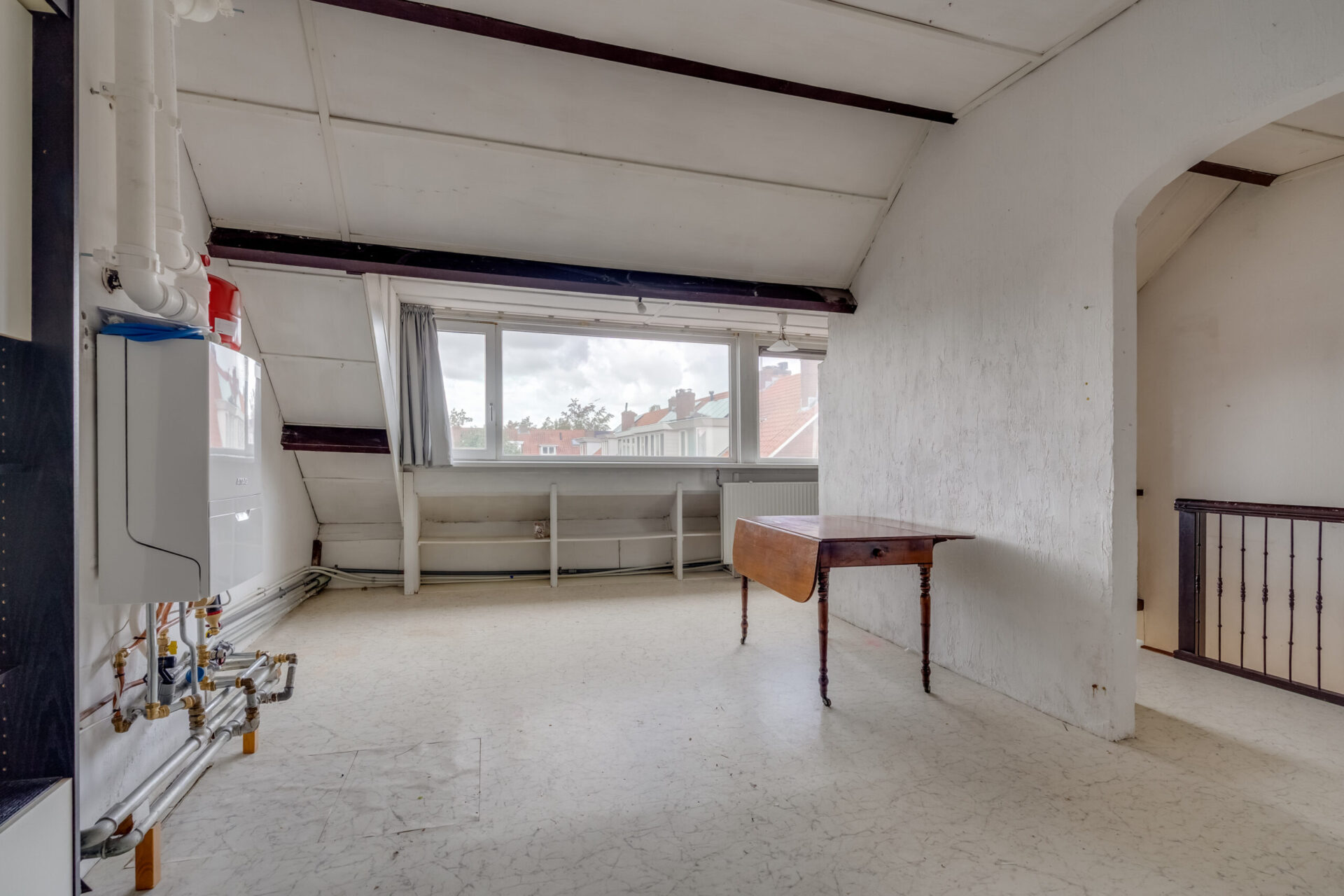 Ruime zolderverdieping met dakkapel aan de achterzijde. Hier kunnen eenvoudig twee extra slaapkamers en eventueel een tweede badkamer worden gerealiseerd.