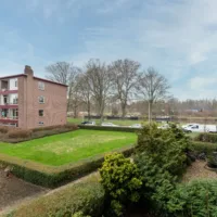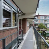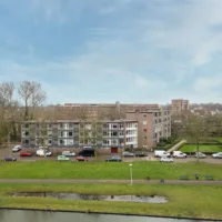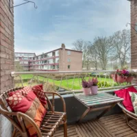 Het balkon op het noordwesten is een fijne plek om heerlijk buiten te zitten en te genieten van de rustige en groene omgeving. Je kijkt op het water, de bomen en een open plantsoen waar buurtbewoners in de zomer graag samen komen. De VvE beschikt over gezamenlijk tuinmeubilair.