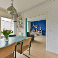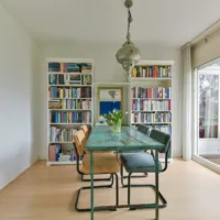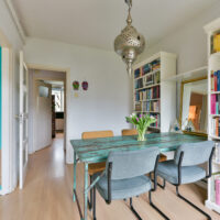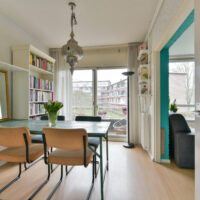 De woonkamer biedt voldoende ruimte voor een comfortabele zithoek en een eettafel. Aangrenzend bevindt zich een extra kamer die momenteel in gebruik is als eetkamer. Vanuit de eetkamer loop je zo het balkon op en sta je midden in het groen.