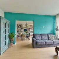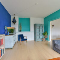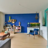 Bij binnenkomst valt direct het lichte karakter van de woning op. De ruime woonkamer beschikt over grote raampartijen aan beide zijden, waardoor een prettige doorzonindeling ontstaat en er veel natuurlijk licht binnenvalt.