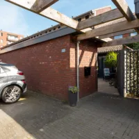 De woning beschikt over een ruime voortuin op het westen (middagzon), waar zich ook de berging en twee eigen parkeerplekken bevinden. Ideaal: altijd plek voor de deur en extra bergruimte binnen handbereik.